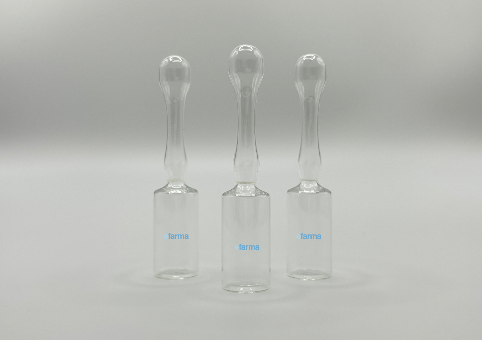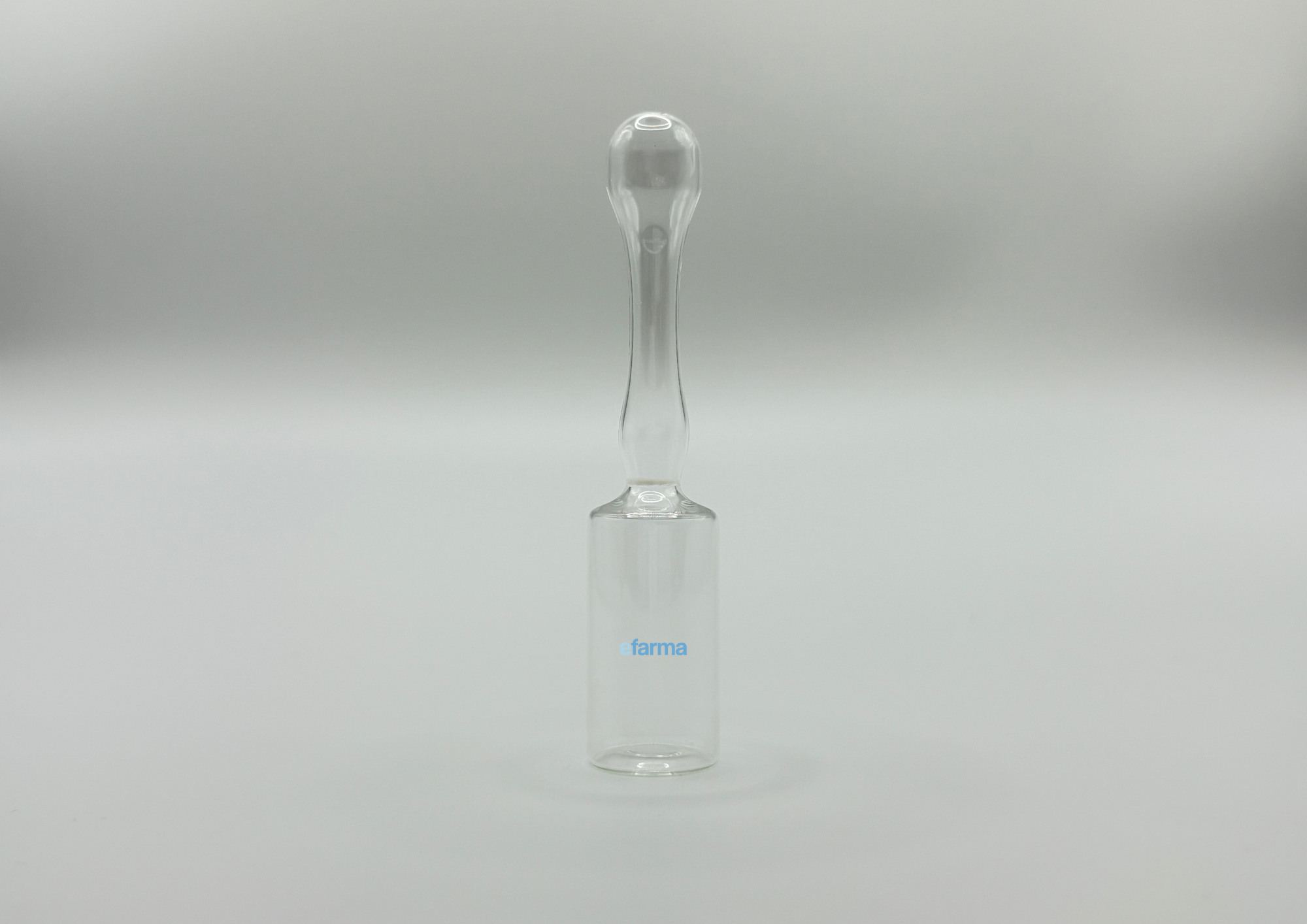 Ampolla de vidre tipus I de 5ml de capacitat i forma D tancada. Disponible en color transparent.