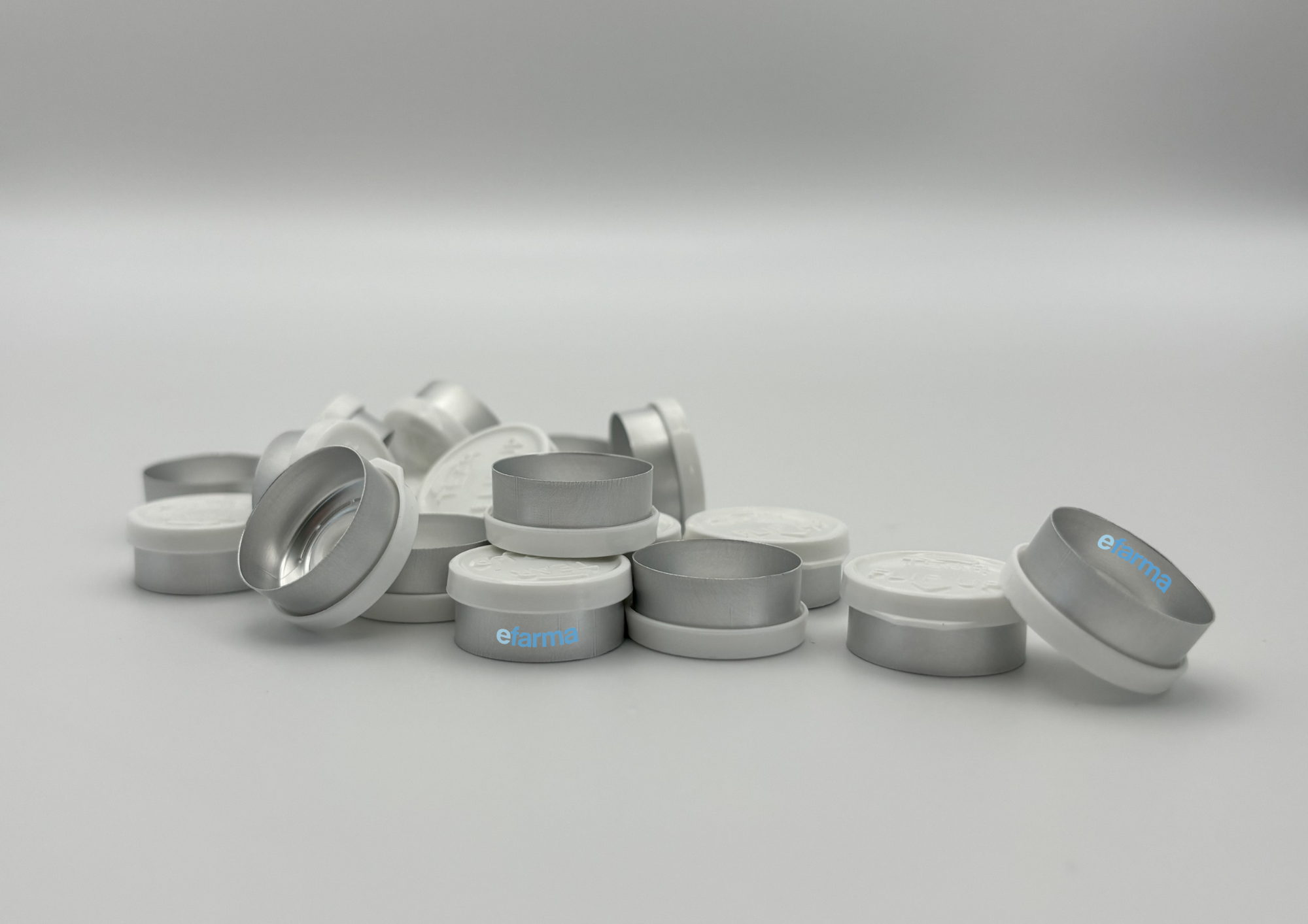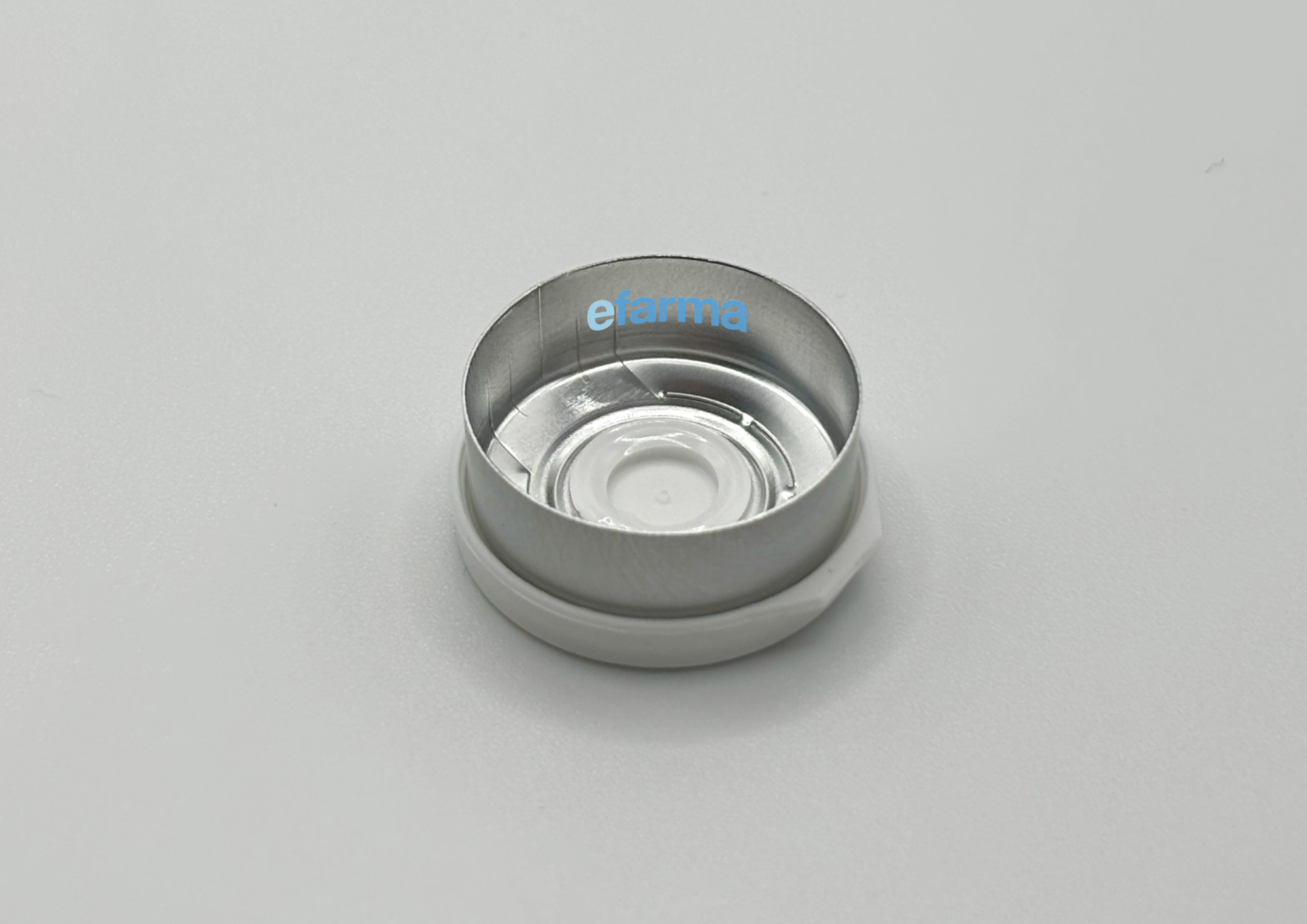 Cápsula de aluminio por viales de boca 20mm. Color blanco. Se caracteriza por la seguridad durante la perforación del propio frasco.