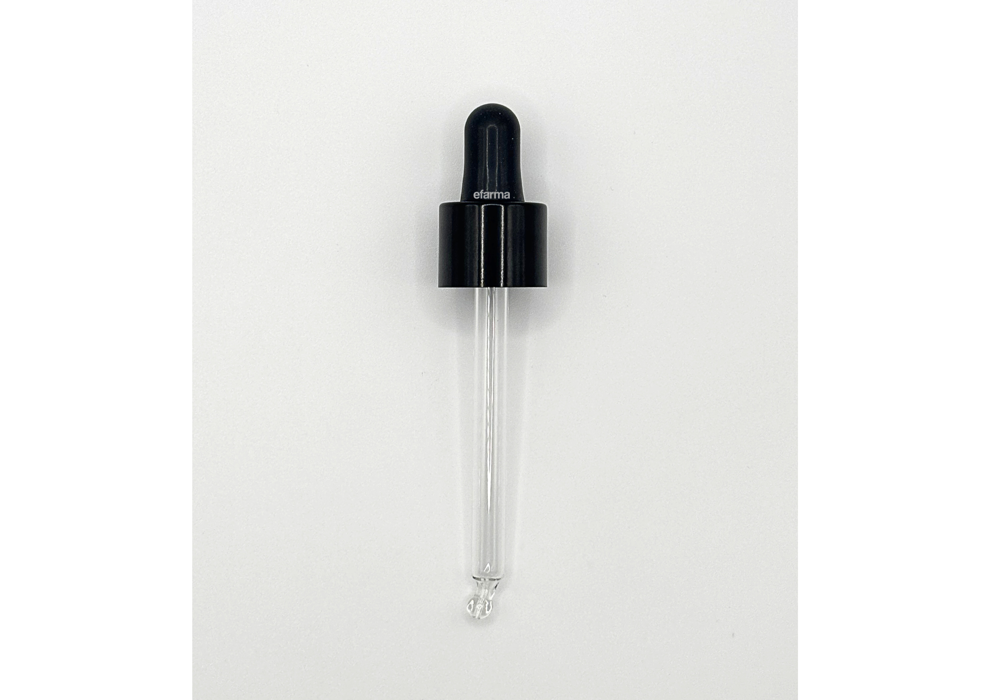 Tapón de urea con pipeta cuentagotas apta para frascos de vidrio de rosca DIN18. Disponible en color negro.