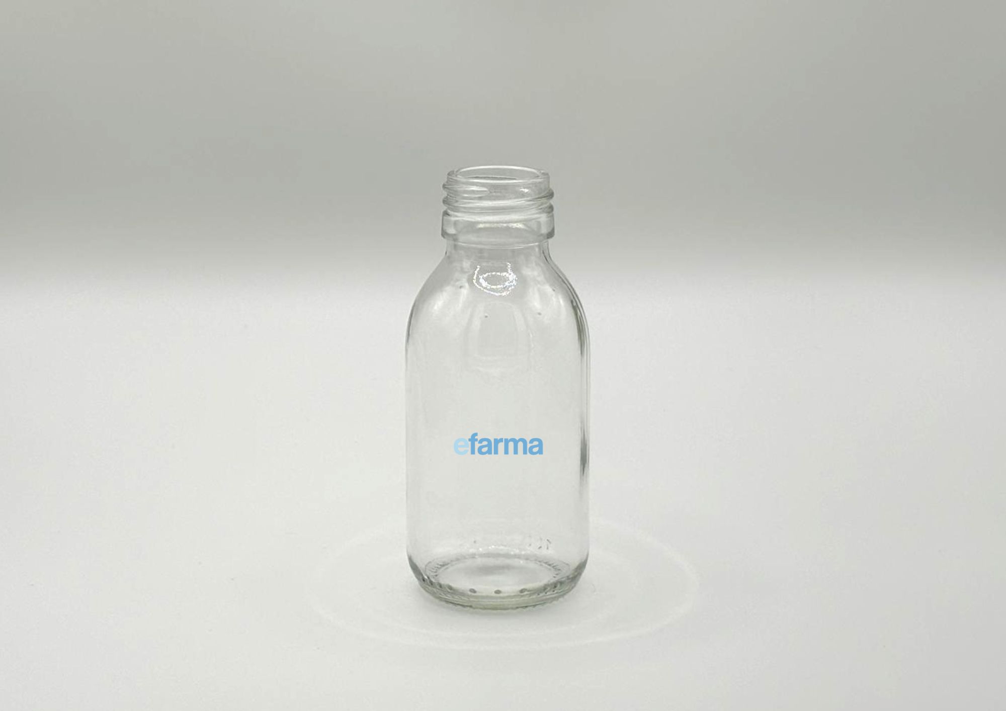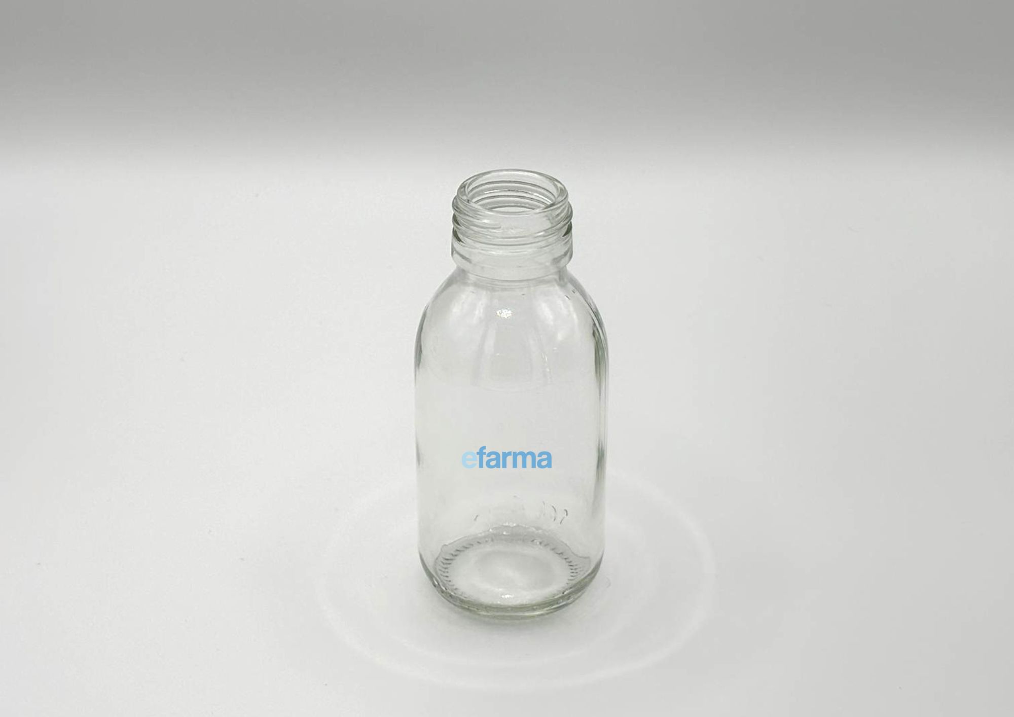 Frasco de vidrio de molde tipo III con resistencia hidrolítica, apto para uso farmacéutico. Capacidad de 100ml. Boca rosca de 28mm de diámetro.