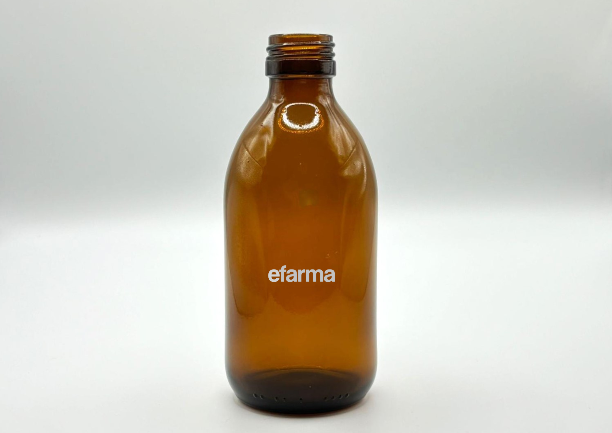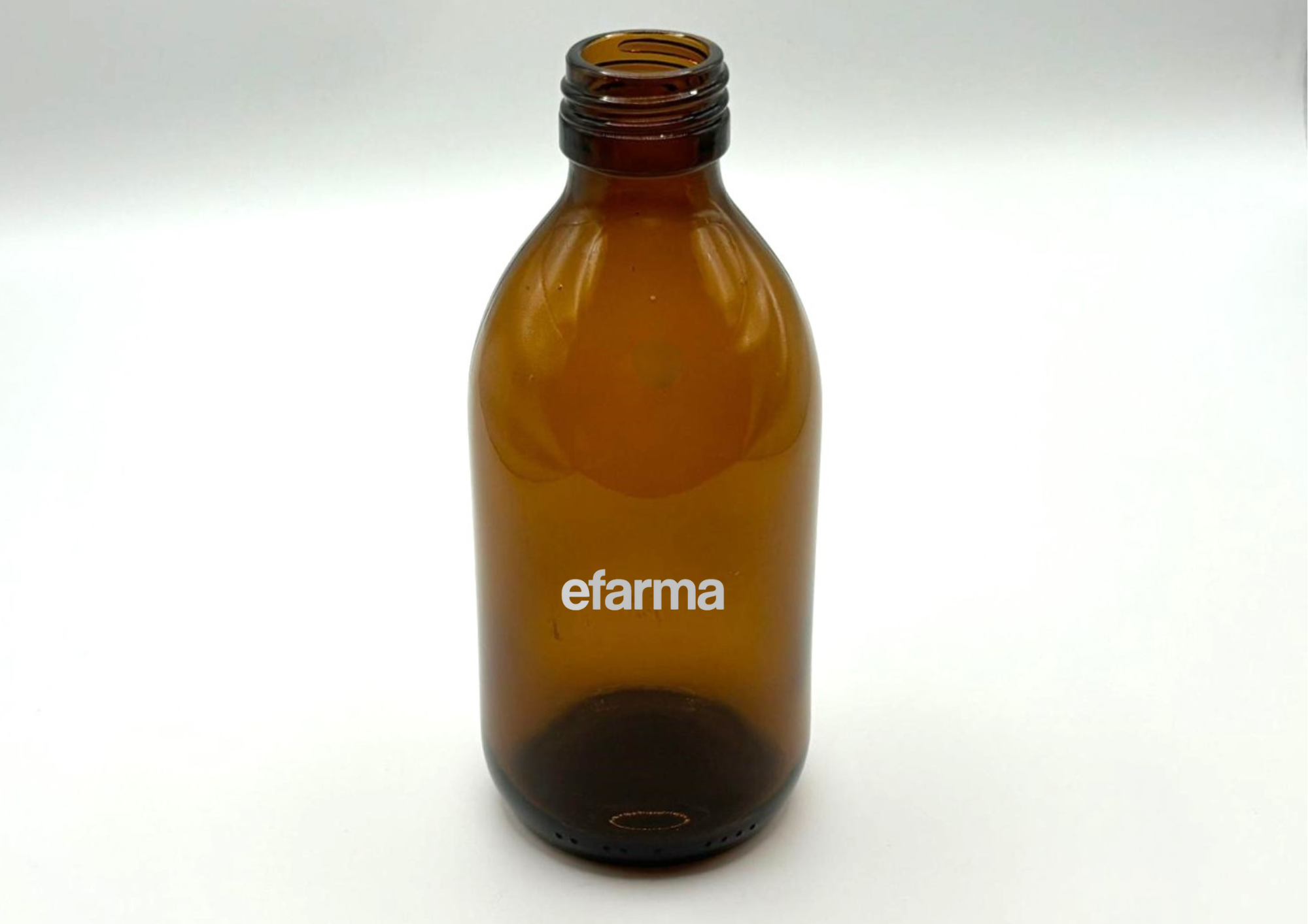 Frasco de vidrio de molde tipo III con resistencia hidrolítica, apto para uso farmacéutico. Capacidad de 250ml. Boca rosca de 28mm de diámetro.