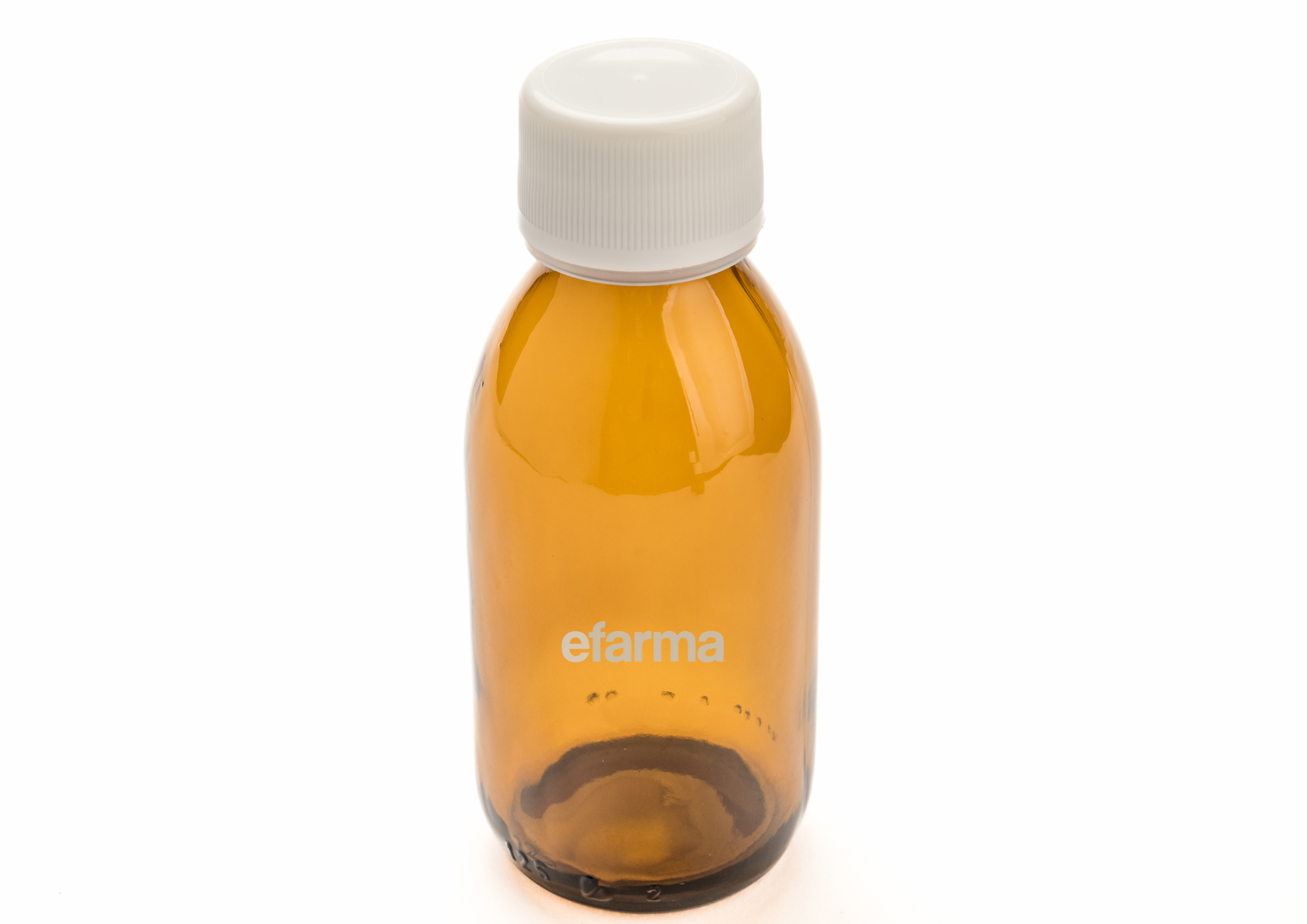 Frasco de vidrio de molde tipo III con resistencia hidrolítica, apto para uso farmacéutico. Capacidad de 125ml. Boca rosca de 28mm de diámetro.