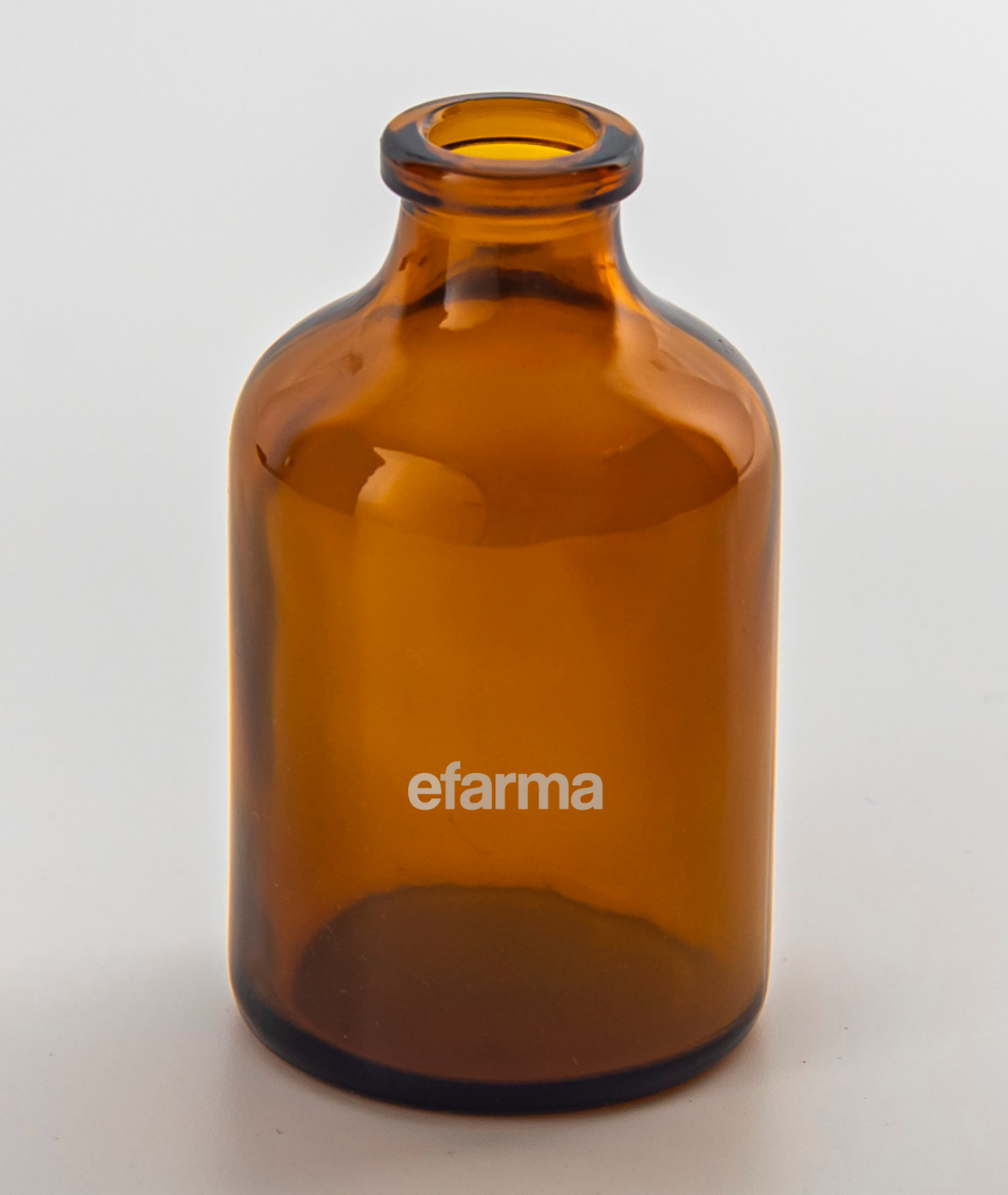 Vial de vidrio de molde tipo II de 50ml. Color topacio. Material con resistencia hidrolítica.