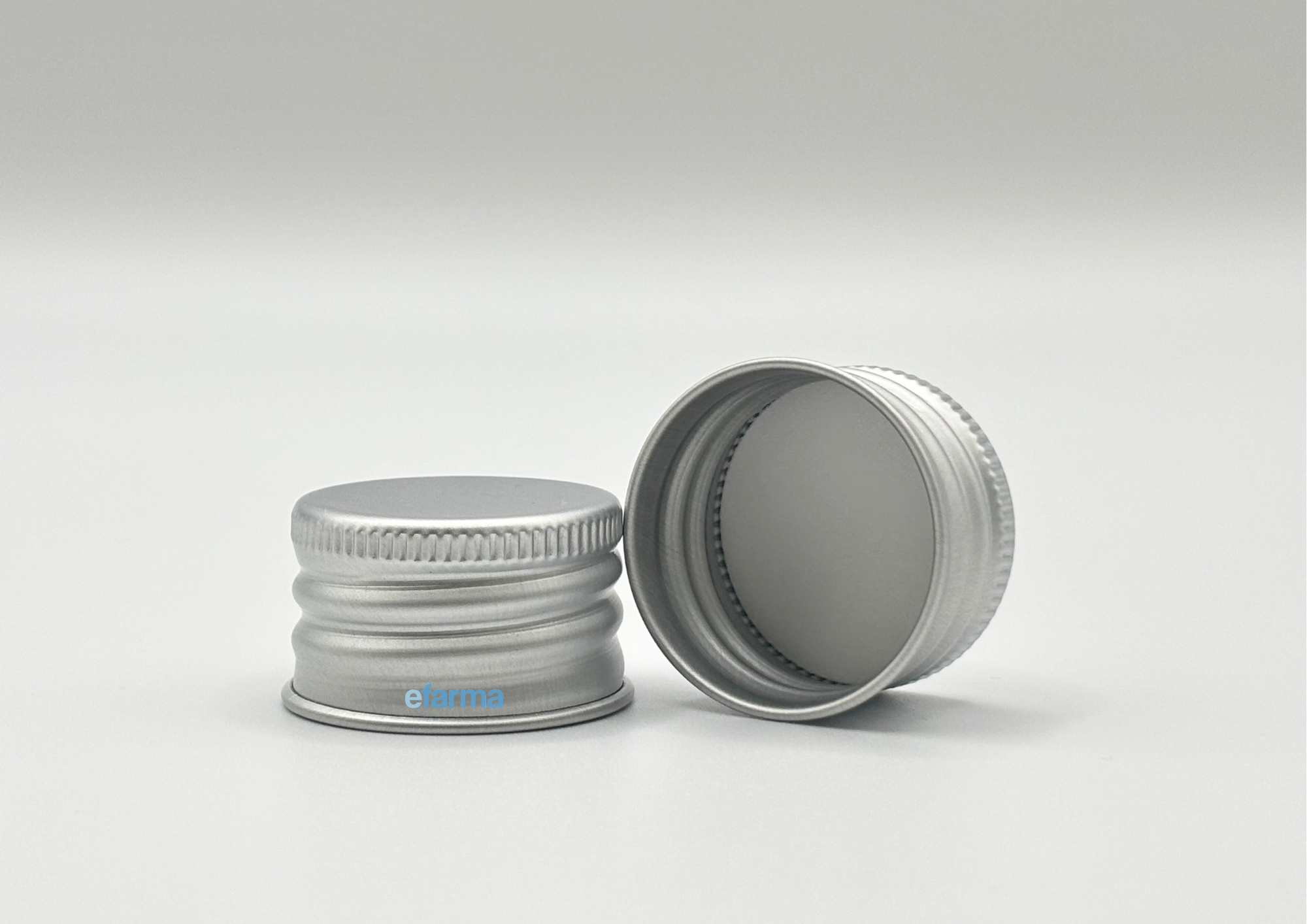 Tapón de aluminio lacado rosca 28/410 con liner EPE. Color plata. Apto para vidrio y plástico.